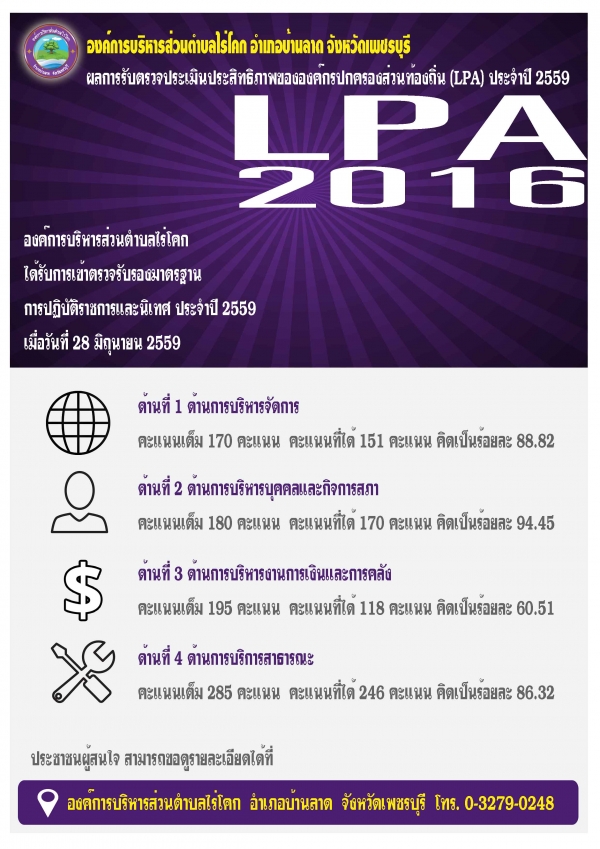 ผลการตรวจประเมิินประสิทธิภาพของ อปท. (LPA) ประจำปี 2559