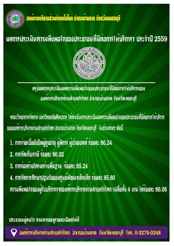 รายงานผลการประเมินความพึงพอใจ ปีงบประมาณ 2559