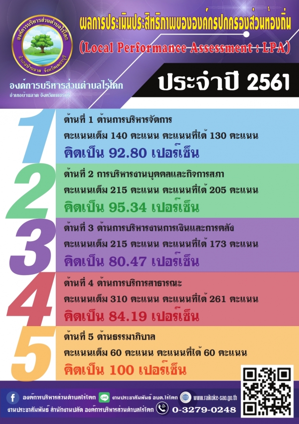 ผลการประเมินประสิทธิภาพของ อปท. ประจำปี 2561