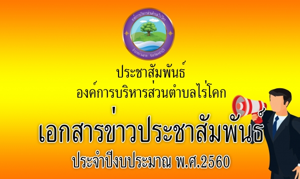 ด้วยองค์การบริหารส่วนตำบลไร่โคก ได้จัดทำเอกสารข่าวประชาสัมพันธ์กิจกรรม/โครงการ ขององค์การบริหารส่วนตำบลไร่โคก เพื่อเป็นการประชาสัมพันธ์ให้ประชาชนได้ทราบผลการดำเนินงานขององค์การบริหารส่วนตำบลไร่โคก และผู้ที่มีส่วนร่วมในกิจกรรมต่างๆในรอบ 3 เดือน (รายไตรมาส) นั้น